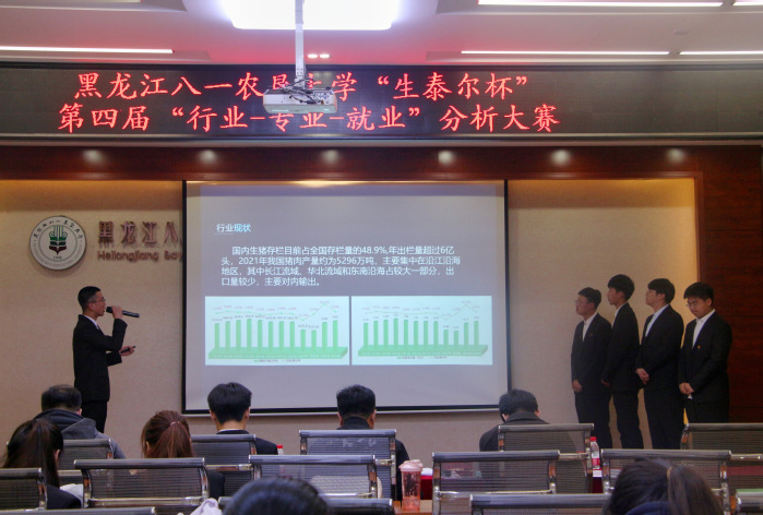 大学生“行业-专业-就业”分析大赛是动物科技学院重点打造的就业指导类三大赛事之一,旨在提升大学生就业能力,增强大学生对相关行业、专业、就业岗位的了解与认知,深入了解就业单位的需求,提高就业胜任力。比赛从报名、初赛到决赛历时一个多月,经8位评审老师初评,有8支团队从34支队伍中脱颖而出进入决赛。决赛采用现场PPT展示、评委提问的形式进行。