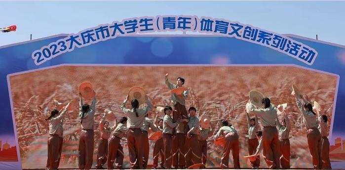 5月7日,2023年大庆市大学生(青年)体育文创系列活动启动仪式在时代广场举行,学校组织学生代表、志愿者600余人参与启动仪式。