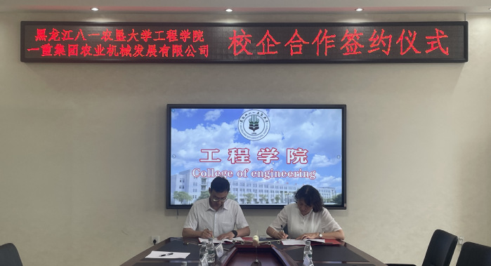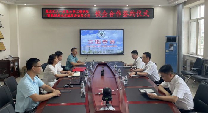 会上,衣淑娟首先对一重集团(黑龙江)农业机械发展有限公司一行人的到来表示欢迎,详细介绍了工程学院的办学经历和发展历程。她表示,工程学院具有专业的农机专家,依托北大荒集团拥有丰富的田间农机装备经验,有着相关领域人才和实践经验。希望院企双方本着平等互利、优势互补、产学结合、资源共享、共同发展的原则,共同找到合作方向,实现互利共赢。郑新毅表示,一重集团(黑龙江)农业机械发展有限公司主要工作围绕央企服务地方、服务龙江农业为目标,以农机装备研发制造应用为支撑,以产业互联网平台为依托,开展农业生产全过程服务,工程学院拥有依托垦区,将科研应用到实践的能力。希望双方通过校企合作,进一步增进沟通与交流,推动产学研发展,提升科学研究水平及人才培养质量,更好发挥各自优势,共谋发展。院企双方签订了《战略合作框架协议》。
