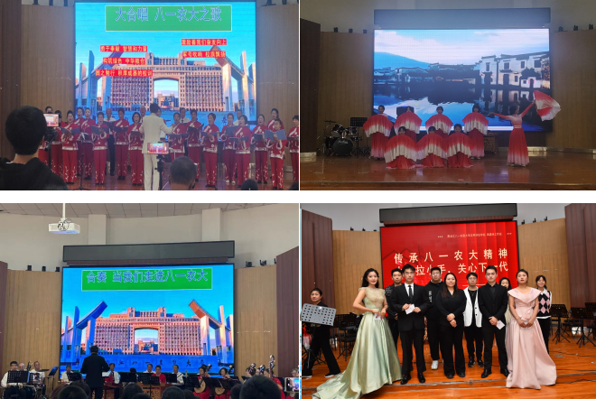 汇演在大合唱《八一农大之歌》《我爱八一农大》中拉开序幕。舞蹈《莫日格勒河》、独唱《将军峰下的思念》、民乐合奏《当我们走进八一农大》、群舞《万疆》等11个节目赢得了满堂掌声,演出在民乐合奏《花好月圆》中落下帷幕,参演的老同志及同学们都以饱满的精神、新颖的形式,尽情抒发对伟大祖国的无限热爱和对学校的深情告白。