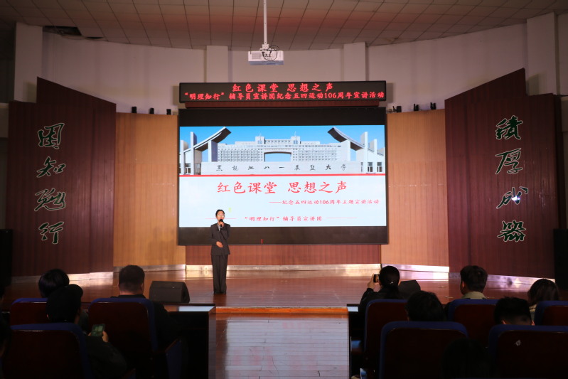 为赓续五四精神红色基因,凝聚青年与民族复兴同频共振的思想共识,筑牢理想信念根基,在五四运动106周年之际,“明理知行”辅导员宣讲团以宣讲为媒,传承五四精神内核,通过“演讲式宣讲+研讨式宣讲”双维宣讲矩阵构建,面向青年辅导员、青年学生、学生党员三个群体,精准化形成“思政创新-精神传承-使命担当”三维育人格局,实现“能力淬炼-思想启迪-先锋锻造”的多维效能。活动累计覆盖300余人次。