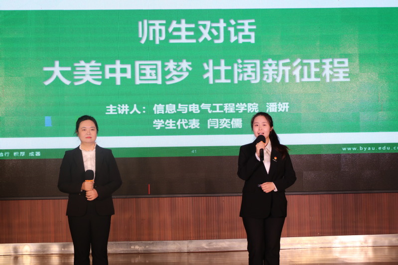 宣讲团团长潘妍与学生代表闫奕儒围绕“大美中国梦、壮阔新征程”展开深度对话,探讨“强国建设需要怎样的青年答案”。通过创新的“对话式”宣讲,激励学生将“小我”成长嵌入“大我”蓝图,敢于吃苦、甘于奉献、勇于担当,用实际行动为中华民族伟大复兴贡献青春力量。