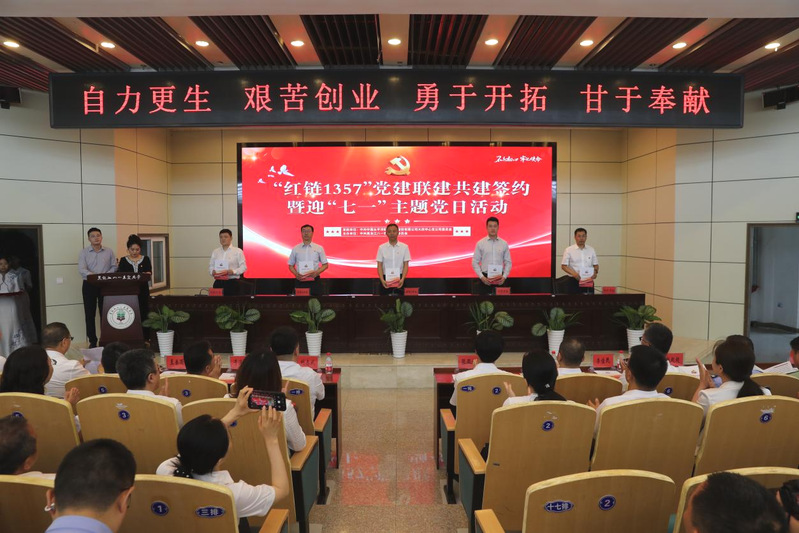 6月27日下午,在喜迎中国共产党成立104周年之际,“红链1357”党建联建共建签约暨迎“七一”专题党日活动在黑龙江八一农垦大学图书馆报告厅隆重举行。本次活动由中共太平洋财产保险股份有限公司大庆中心支公司委员会发起,中共黑龙江八一农垦大学委员会主办,大庆市委社会工作部、武警黑龙江总队大庆支队等30余家党组织积极响应,以党建引领开启高质量发展新征程,向党的生日献礼。