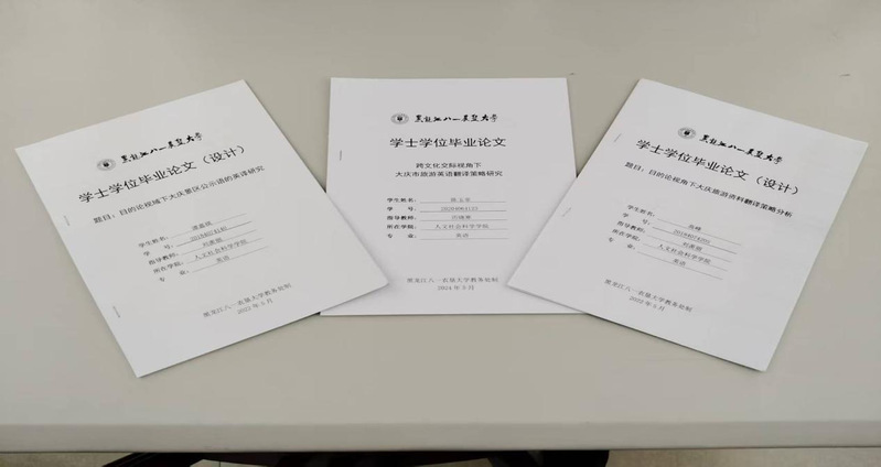 学术传承文化,服务旅游对外流。英语语言文学专业注重引导学生立足本土文化资源撰写毕业论文,通过学术研究助力大庆文化传播。近年毕业生围绕铁人精神、湿地文化和大庆旅游等主题完成了一系列毕业论文研究。例如,《跨文化交际视角下大庆市旅游英语翻译策略研究》以铁人纪念馆及博物馆藏品资料为对象,构建了契合大庆文化特色的景点翻译策略体系;《目的论视角下大庆旅游资料翻译策略分析》探讨湿地文化和铁人精神对外传播的翻译路径;《目的论视域下大庆景区公示语英译研究》基于实地调研提出了景区公示语翻译改进方案。通过这些有针对性的研究,学生不仅提升了学术能力,更为大庆旅游国际化提供了切实可行的语言服务方案,促进了城市文化走出去。