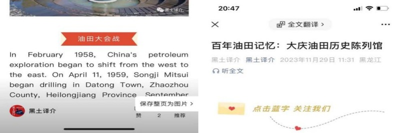 创新项目实践,弘扬大庆精神内涵。英语语言文学专业教师积极指导大学生开展创新创业训练计划项目,探索大庆精神的新时代价值及传播路径。其中,《伟大建党精神引领下新时期铁人精神的时代价值及弘扬路径研究》项目深入挖掘“大庆精神、铁人精神”的当代意义。项目团队发挥英语专业优势,一方面聚焦石油会战时期涌现的“爱国、创业、求实、奉献”精神典范(以铁人王进喜为代表),深度剖析其精神内涵,结合双语情景讲好红色故事并开展翻译实践;另一方面创办了“黑土译介”微信公众号,以英文深度解读百年油田记忆、大庆精神和铁人精神。从翻译传播角度突破文化壁垒,搭建起红色文化传承的新平台,有效促进了大庆精神的国际传播,为提升城市文化软实力、服务大庆经济社会发展提供了新思路和新载体。