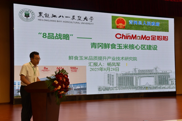 为深入推进鲜食玉米产业高质量发展,提升区域品牌竞争力,8月27日至28日,由鲜食玉米品质提升产业技术研究院、青冈县蔬菜(鲜食玉米)协会、黑龙江省农业品牌创业工程协同创新推广体系联合主办的首届黑龙江省鲜食玉米产业创新大会暨青冈县鲜食玉米“8品战略”研讨会在青冈县成功举办。黑龙江八一农垦大学校长李翠霞,黑龙江省农业农村厅经济作物管理处处长修国辉,我校2001届校友、青岛金妈妈种业科技有限公司总经理周玉忠等多位领导及行业专家出席活动。来自高校和科研院所的行业专家、企业代表及青冈县本地鲜食玉米企业技术骨干等百余人参会。会议由我校园艺园林学院承办,院长杨凤军主持。鲜食玉米科技小院师生参会。