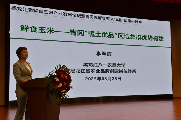 8月28日,李翠霞作了“鲜食玉米—青冈‘黑土优品’区域集群优势构建”的主题报告,指出了当前产业的破局之路、转型升级、品牌赋能和体系护航的办法。
