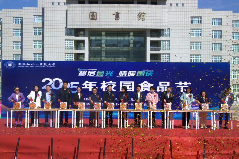 9月27日,在热烈庆祝中华人民共和国成立76周年的喜庆氛围中,智启食光、情暖国庆——黑龙江八一农垦大学2025年校园食品节成功举办。校党委副书记高宏、副校长王长远、副校长赵达、大庆市龙凤区副区长张斯文和全校师生代表共3000余人欢聚一堂,品鉴食品、欣赏表演,礼赞新时代、共筑中国梦。