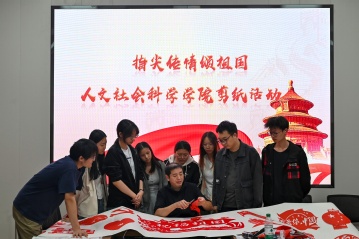 人文社会科学学院组织2025级新生与教师、教官共拍“军训礼赞·祝福祖国”短视频,非遗传承人葛涛老师指导学生剪纸,创作“五星红旗”、“祝福祖国”、“铁人头像”等作品,以传统技艺献礼盛世中华。