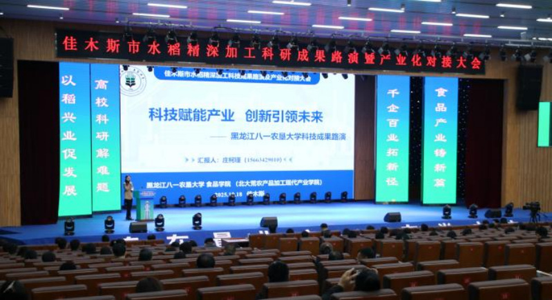 10月18日上午,佳木斯市水稻精深加工科研成果路演暨产业化对接大会开幕。学校党委副书记高宏代表学校参会,新农村发展学院负责人、食品学院(北大荒农产品加工现代产业学院)教师代表等共同参加。