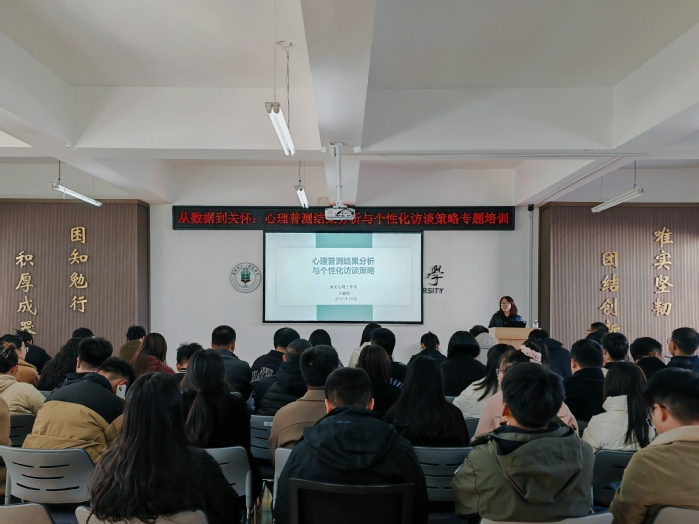 活动以《从数据到关怀:心理普测结果分析与个性化访谈策略》与《本研一体化管理工作实务与案例解析》为题,为老师们系统解析了各量表的维度构成、条目内涵及其在实际访谈中的应用逻辑,重点讲解了如何依据测评数据识别潜在心理问题及问题类型,梳理了学生基本数据统计上报、寝室管理与走读办理、档案规范、处分解除流程及安全值班安排等事务的工作要点与操作规范。