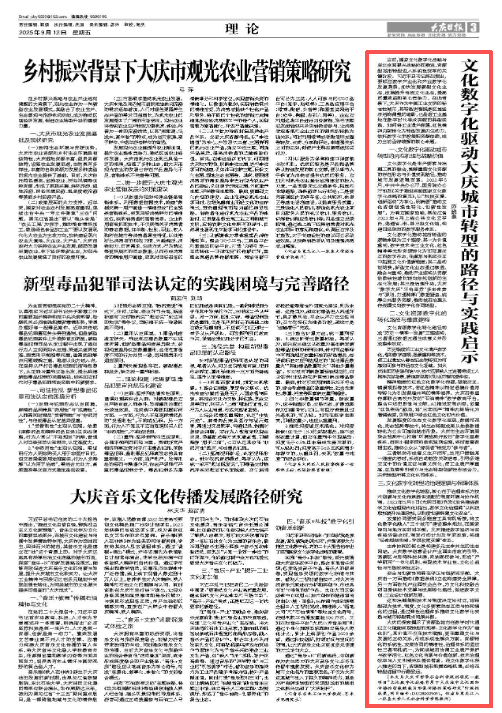 (本文系大庆市哲学社会科学规划研究一般项目“文化数字化战略背景下大庆城市文化国际传播的智能赋能与形像传播的策略研究”阶段性成果,项目编号:DSGB2025051。作者系黑龙江八一农垦大学人文社会科学学院教师)