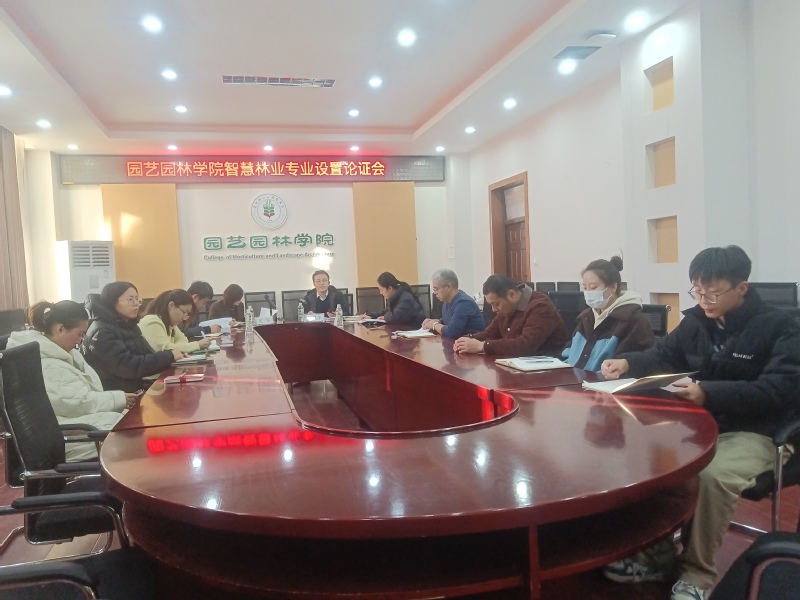 为进一步加强学院“十五五”规划科学性,优化学科专业设置,服务产业行业发展需求,园艺园林学院于11月13日在学院1061会议室召开了“智慧林业”专业设置论证会,会议以线上+线下相结合的方式进行。会议由学院院长杨凤军主持,学院党委书记张南、副书记徐娟及园林系全体教师参加会议。
