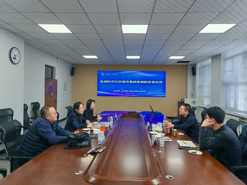 11月17日,牡丹江市农旅投资(集团)有限责任公司副总经理赵双,黑龙江镜泊湖生物科技有限公司党政办公室主任孙晓东到访食品学院(北大荒农产品加工现代产业学院),与院长张丽媛、专家李兴革围绕黑木耳、鹿茸菇特色菌菇的精深加工展开深入交流,并达成合作意向。