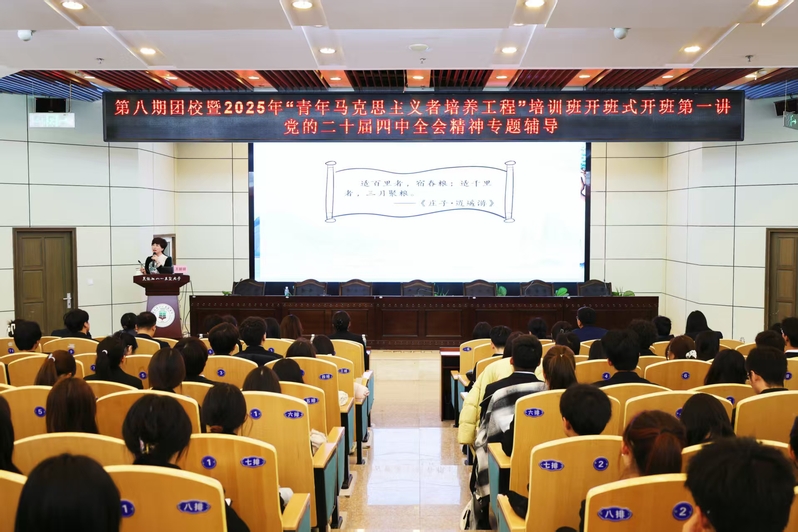 为深入学习贯彻习近平新时代中国特色社会主义思想,培养优秀青年政治骨干,推动我校“青年马克思主义者培养工程”走深走实,11月22日,我校第八期团校暨2025年“青马工程”培训班开班仪式在图书馆报告厅举行。校党委副书记高宏,相关部门主要负责人,各二级学院党委副书记、团委书记,全体辅导员及培训班班主任、全体学员参加开班式,仪式由校团委书记赵玥主持。