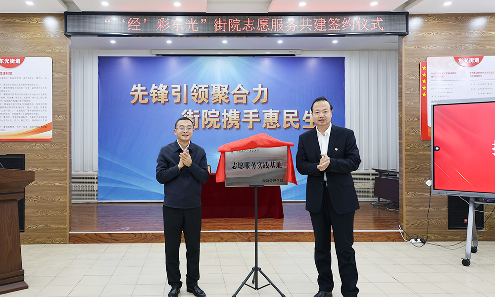 11月20日,经济管理学院与龙凤区东光街道“‘经’彩东光”街院志愿服务共建启动暨签约仪式在东光街道党群服务中心举行。学院党委书记李志有、龙凤区委副书记马一军等相关部门负责人及学院师生代表参加仪式,共同见证街院志愿服务合作开启新篇。
