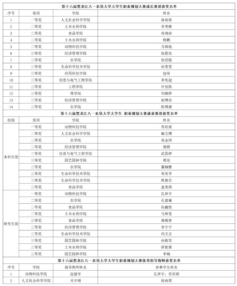 为贯彻落实省教育厅《关于举办第三届全国大学生职业规划大赛黑龙江赛区选拔赛暨第13届黑龙江省大学生职业规划大赛的通知》精神,提高我校大学生职业规划意识和求职能力,引导广大学子以择业新观念打开就业新天地,促进毕业生高质量充分就业,我校于10月10日-11月21日举办了以“筑梦青春志在四方,规划启航职引未来”为主题的第十六届大学生职业规划大赛。