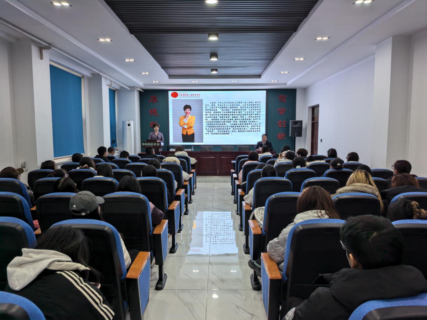 王丽丽以《笔墨春秋绘蓝图 五年一诺创未来》为主题,从全会基本情况、“十五五”规划主要内容、全会精神的实践要求三个方面,通过鲜活案例对全会精神作了全面宣讲和系统阐释,深化了学院师生对全会精神的理解。讲座主题鲜明、内涵丰富,政治站位高、理论阐述深、联系实际紧,对于学院师生深刻理解和领会党的二十届四中全会精神的核心要义和实践要求有着很强的启发性和指导性。