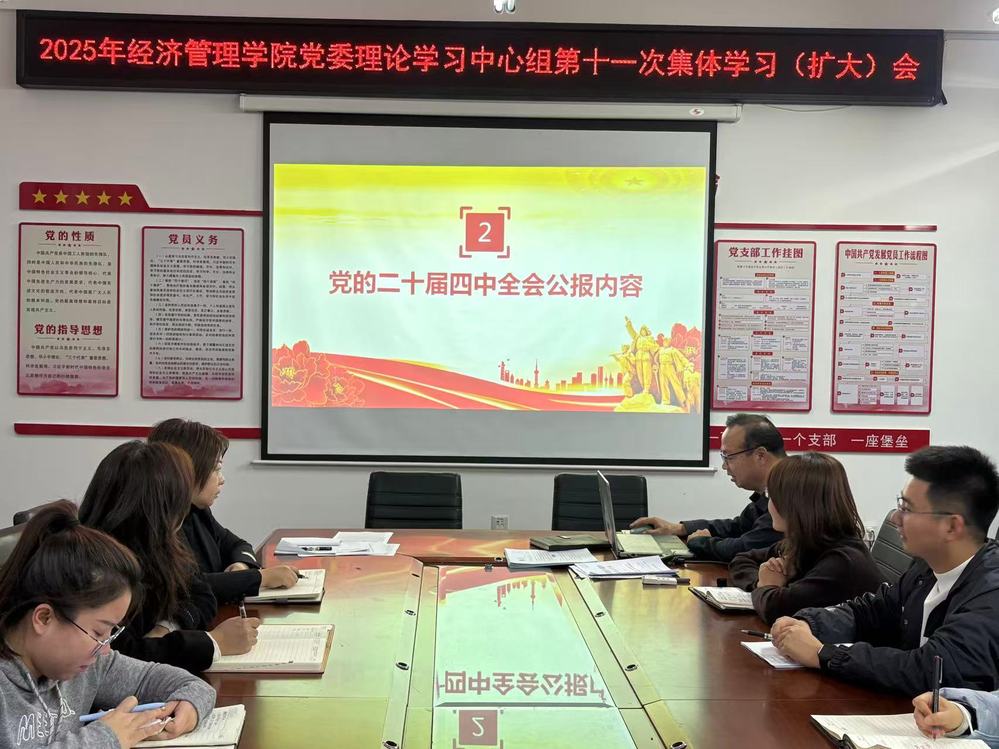 11月24日,经济管理学院党委理论学习中心组在学院党建会议室召开第十一次集体学习(扩大)会,学院党委理论学习中心组成员、党支部书记参加会议,会议由学院党委书记李志有主持。
