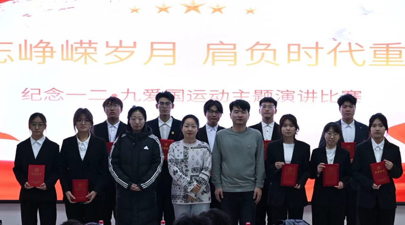 参赛选手依次登台,他们以深情的讲述回溯“一二·九”爱国运动中青年学子不畏强权、救亡图存的历史壮举,也以激昂的陈词展望当代青年在科技创新、乡村振兴、文化传承等广阔天地中的责任与担当。选手们紧密联系自身经历:有人分享在偏远乡村支教时见证的希望与成长,呼吁“将爱国情怀融入日常行动”;有人则援引陆璀等前辈上下求索、奔走呐喊的感人事迹,抒发出“强国有我,重任在肩”的青春信念。声情并茂的演讲,既有娓娓道来的深情,也有铿锵有力的宣言,深深感染了全场观众,一次次引发静默深思,又一次次赢得持久而热烈的掌声,活动中文艺表演环节精彩纷呈,为活动现场注入了蓬勃的艺术活力。最后,经过激烈角逐与评委的认真评议,王婉舒同学荣获一等奖;石丽美、李博两位同学荣获二等奖;陈鑫、孙维、王思为三位同学荣获三等奖;高堉婷、李欣泽、邓化瑞、高鹏宇四位同学荣获优秀奖。