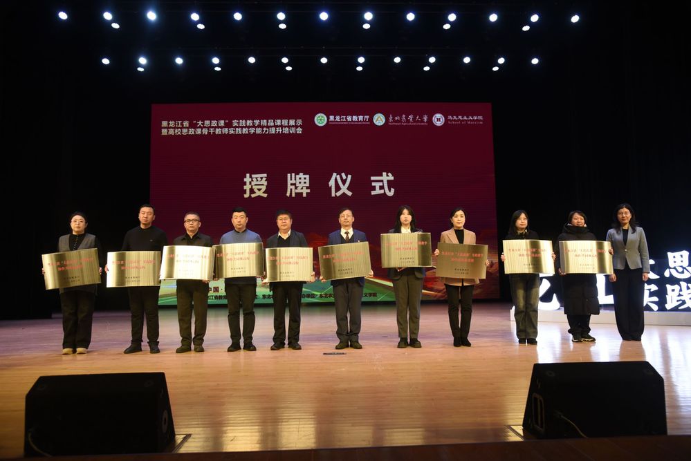 11月29日,在黑龙江省“大思政课”实践教学精品课程展示暨高校思政课骨干教师实践教学能力提升培训会上,我校2门课程入选省级百节精品课程,马克思主义学院代表学校接受黑龙江省“大思政课”实践教学协作共同体高校授牌,标志着我校“大思政课”建设进入提质增效、协同共建的新阶段。