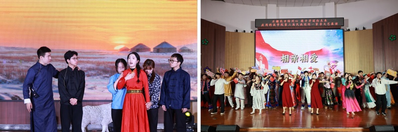 近年来,应用科技学院始终以铸牢中华民族共同体意识为思政教育工作鲜明主线,通过成立“农籽同心”辅导员工作室、建设铸牢中华民族共同体意识文化展廊、开展“石榴籽专项行动”等不断推动民族团结进步事业在校园落地生根。此次展演既是应用科技学院铸牢中华民族共同体意识成果的集中展示,也是我校民族团结进步工作的重要实践和校园文化建设的生动载体。活动以艺术为桥,进一步增强了师生的民族自豪感与凝聚力,为校园民族团结教育注入了鲜活力量。