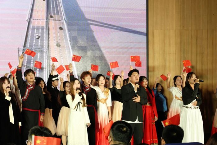 晚会在激昂深情的大合唱《我爱你中国》中推向高潮并圆满落幕。歌声嘹亮,情感真挚,表达了全体师生对祖国最深沉的热爱与祝福。