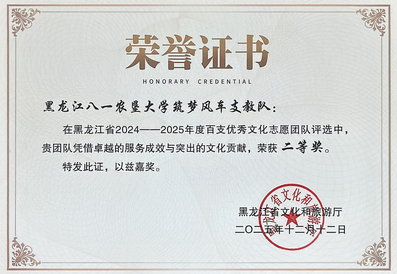 近日,2024-2025年度黑龙江省“百支优秀文化志愿团队”表彰大会在哈尔滨举行。此次表彰由省文化和旅游厅、省委社会工作部、省教育厅联合发起,采用“差额推选+全流程培育”模式,最终从121支入围团队中评出一、二、三等奖各10支。我校“筑梦风车”支教队凭借其卓有成效的志愿服务,获评省级“优秀文化志愿团队”二等奖。