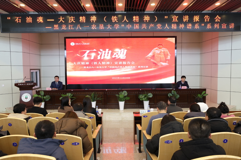 张亚志在总结讲话中表示,大庆精神(铁人精神)是中国共产党人精神谱系的重要篇章,与我校“艰苦奋斗、无私奉献、务实求真、负重致远”的办学精神高度契合,也与“自力更生、艰苦创业、勇于开拓、甘于奉献”的北大荒精神血脉相连。他强调,全校师生应以此次宣讲为契机,进一步深刻领会中国共产党人精神谱系的丰富内涵,自觉将精神力量转化为推动学校各项事业发展的实干担当,为将我校建设成为特色鲜明的高水平研究应用型农业大学汇聚磅礴奋进力量。