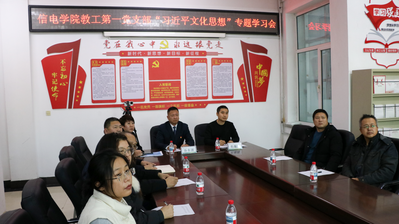 为深入学习贯彻习近平文化思想,推动党的创新理论落地生根,12月24日,信息与电气工程学院教工第一党支部以“深学细悟习近平文化思想,凝心铸魂赋能育人使命”为主题召开专题学习会。副校长孙东波出席本次支部活动并指导支部党建工作。计算机系党支部党员参加会议,会议由党支部书记关海鸥主持。