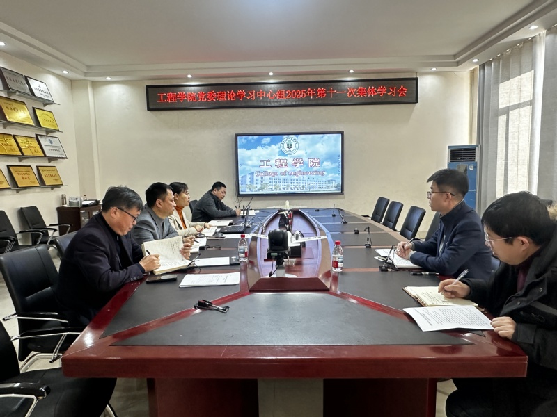 12月29日,工程学院党委组织召开理论学习中心组2025年第十一次集体学习会,学院党委理论学习中心组全体成员参加学习,会议由党委书记姜玉美主持。