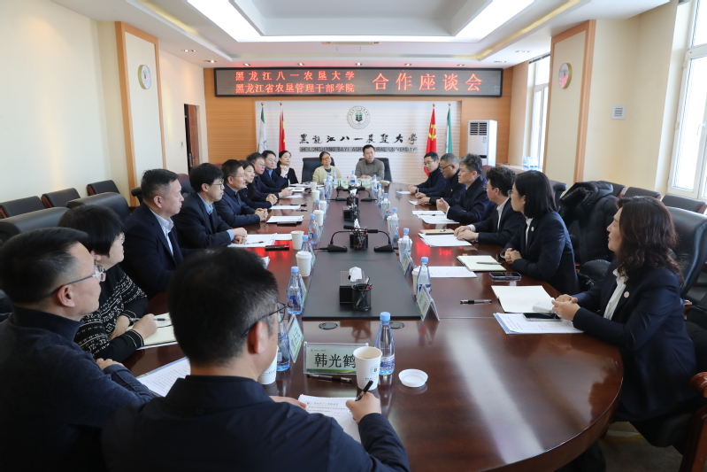 1月16日上午,黑龙江省农垦管理干部学院党委书记赵广来、院长孙玉成一行来我校开展合作交流。学校党委书记解宗军,党委副书记、工会主席高宏,党委副书记张亚志,副校长崔卫国、孙东波、赵达出席会议。