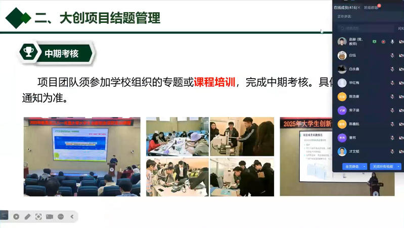为推动我校大学生创新训练计划项目的规范运行与质量提升,1月15日,教务处通过线上形式组织开展了“大学生创新训练计划项目培育及管理办法解读”专题培训,吸引了全校四百余名师生在线参与。