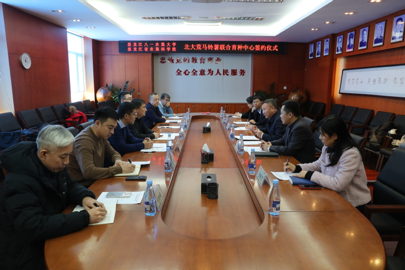 1月20日,黑龙江省农垦科学院副院长杜雅刚一行来访我校,双方正式签署协议,合作共建“北大荒马铃薯联合育种中心”。副校长孙东波出席签约仪式并致辞,双方单位相关部门负责人及科研骨干与会。