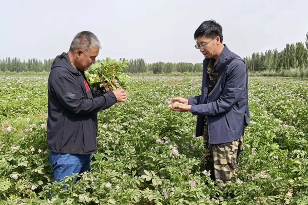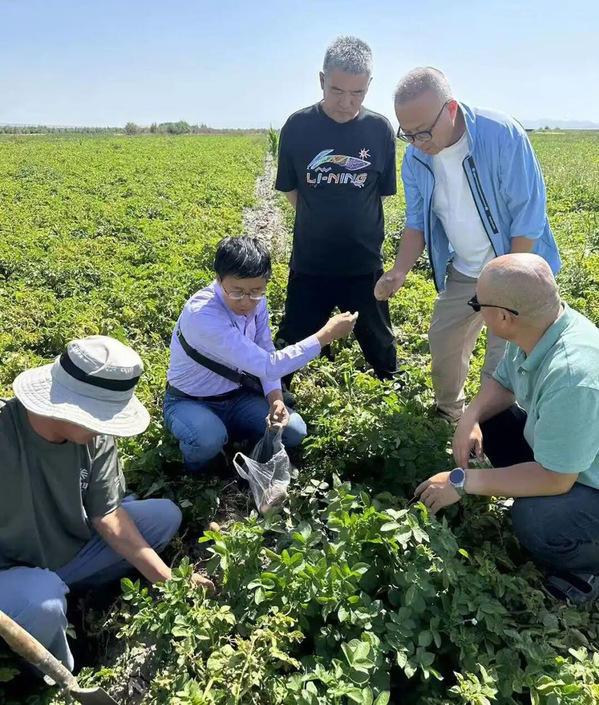 为此,金光辉2025年分两次远赴新疆,一共驻守了13天。据他回忆,要从哈尔滨坐飞机到北京,从北京转机到乌鲁木齐,再从乌鲁木齐转机到叶尔羌机场,最后才能坐车到喀什地区的泽普县,那里有他需要开展技术服务的企业。第一次是6月6日至13日,金光辉除来到新疆阿拉尔市和喀什地区,还到达了远届淀粉公司原料薯生产基地—中国西极“乌恰县”,边境对面是吉尔吉斯斯坦国,距离大庆有万里之遥。第二次是8月24日至28日,不仅来到喀什的泽普县和乌恰县,还到达阿克苏地区、伊利昭苏县。金老师的主要工作:一是与当地企业和政府机构洽谈合作。二是对引种到当地的垦薯系列和“红粉佳人”马铃薯品种进行生产调研和技术服务。