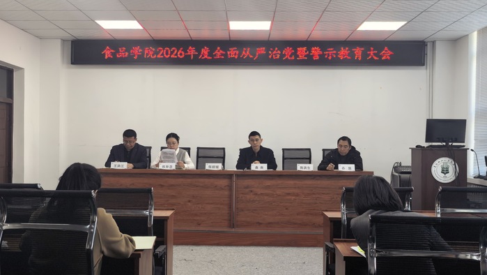 为深入贯彻学校党委全面从严治党工作部署,进一步增强全院教职工纪律规矩意识和廉洁从教自觉,4月1日,食品学院召开2026年全面从严治党暨警示教育大会。学院全体教职工参加会议。